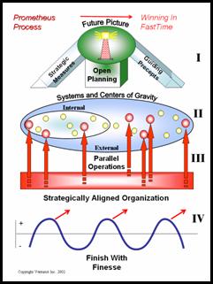 It is almost always the case that the current organization structure will not be optimum for a new strategy, especially if it involves an aggressive Future Picture. That being the case, part of Campaigning to Win is to modify the structure as required to allow the organization to move fast and accurately against the centers of gravity. The campaign teams themselves, of course, are designed for rapid action and will normally provide the bridge to a new formal structure. In the interim, however, the organization is acting and winning in the real world and is not waiting for the development of a new structure.